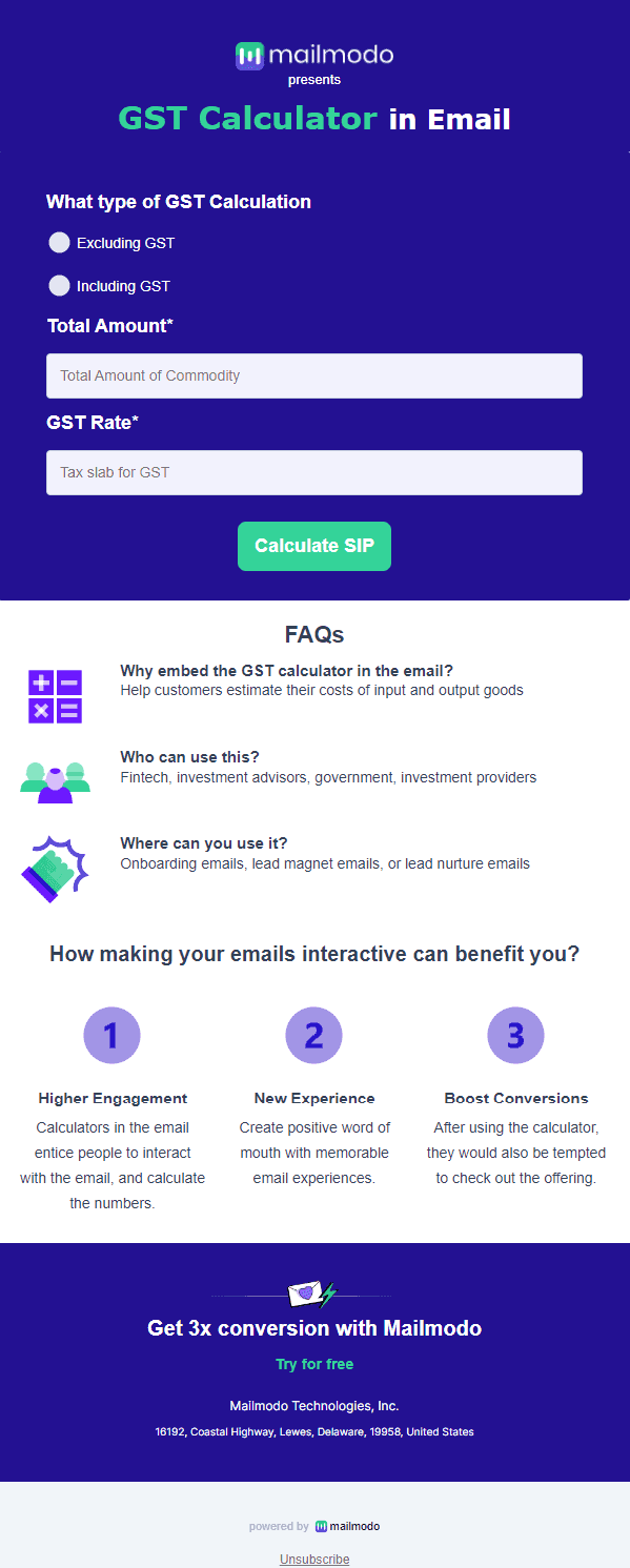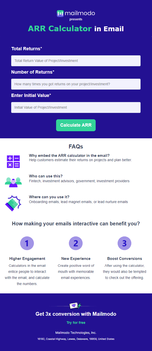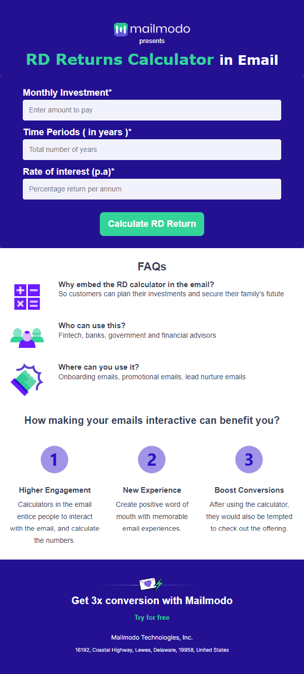 Integrating an EMI calculator directly into your emails gives your customers a convenient and interactive tool to calculate their monthly installments effortlessly. This can significantly increase number of conversions thus enhance the effectiveness of your email campaigns related to loans and financial services.