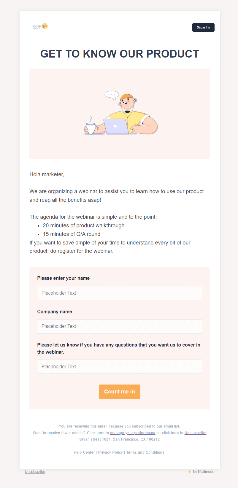 You will be redirected to Mailmodo's template builder if you already have an account. If you don't have one, you can create one by clicking here.